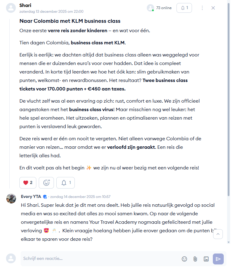 De reiswereld verandert continu. In je eentje lukt het niet om alle travel hacks en nieuwe goedkope awardtickets routes te zoeken. Maar samen in een community wel.